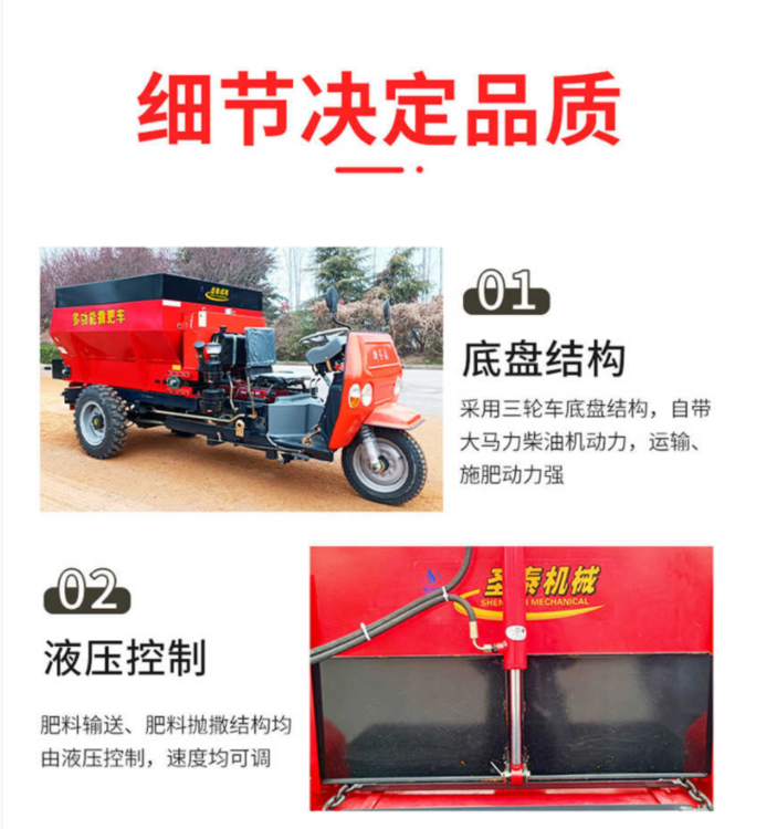 適應(yīng)性:撒肥機(jī)設(shè)計(jì)合理,可一機(jī)多用,適用于細(xì)粒肥料的施用。同時(shí),其施肥噴頭可根據(jù)不同的肥料種類和土地情況進(jìn)行調(diào)整,施肥的均勻性和效果。