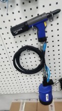 環(huán)槽鉚釘槍是一種用于安裝環(huán)槽鉚釘?shù)墓ぞ撸?它可以是氣動(dòng)環(huán)槽鉚釘槍和液壓站組成,液壓站一般應(yīng)用于高強(qiáng)度環(huán)槽鉚釘鉚接工作