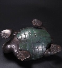 商代已出現(xiàn)了我國早的俏色玉器--玉鱉。令人嘆服和為成功的是,商代已開始有了大量的圓雕作品,此外玉匠還運(yùn)用雙線并列的陰刻線條(俗稱雙勾線),有意識地將一條陽紋呈現(xiàn)在兩條陰線中間,使陰陽線同時發(fā)揮剛勁有力的作用,而把整個圖案變化得曲盡其妙。既消除了完全使用陰線的單調(diào)感,又增強(qiáng)了圖案花紋線條的立體感。
