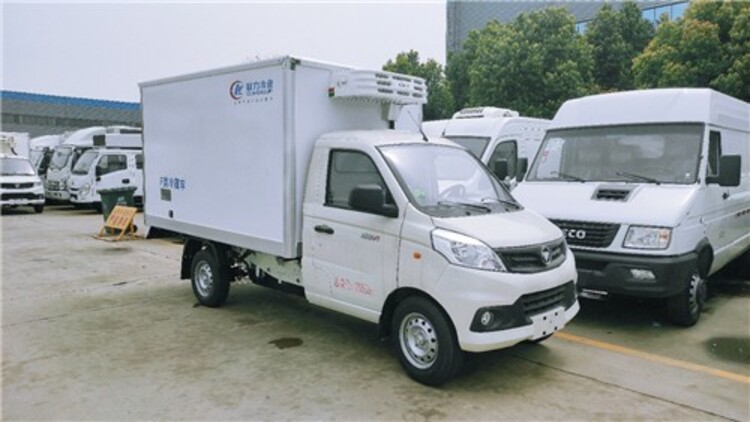 上裝配置:廂體內(nèi)外采用玻璃鋼材質(zhì),中間8cm聚氨酯發(fā)泡保溫層,廂體底板材質(zhì)采用花紋防滑鋁地板,配不銹鋼門鎖、不銹鋼門框、不銹鋼合頁(yè)、不銹鋼上包角,廂體鋁型材包邊,前站排水孔,廂內(nèi)頂部安裝LED高亮度照明燈,廂體標(biāo)配3M塑料板反光標(biāo)牌,可選裝各品牌-5°~-18°制冷機(jī)組。